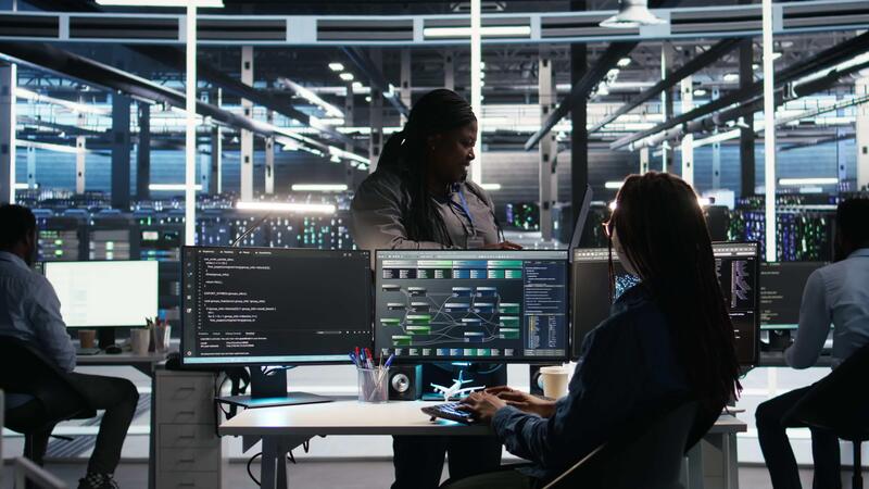 datos centrar gerente supervisando técnico utilizando nodo árbol software a analizar conjuntos de datos. servidor habitación equipo líder supervisa eso experto utilizando visual programación herramientas a mejorar engranaje actuación, cámara un Vídeo Pro