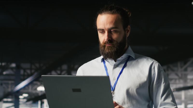 programador en datos centrar plataforma utilizando ordenador portátil a monitor neural red llm visualización. industrial servidor granja eso profesional supervisando aparejos potenciando máquina aprendizaje procesos Vídeo Pro