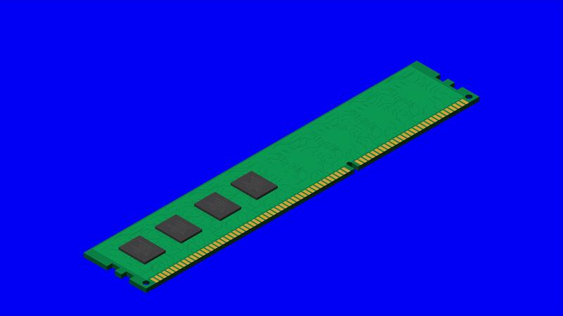 isométrica aleatorio acceso memoria animación. RAM memoria realista 3d isométrico computadora hardware componentes 4k animación Vídeo Pro
