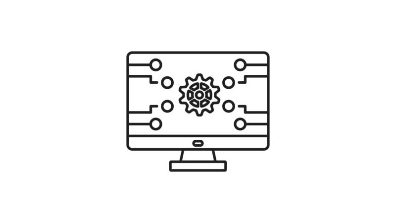 ordenador personal monitor línea animación. ordenador personal monitor icono con engranaje y circuito conexiones, ideal para tecnología reparar sitios web, electrónico reparar servicios, o computadora software conceptos. animado contorno icono Vídeo Pro