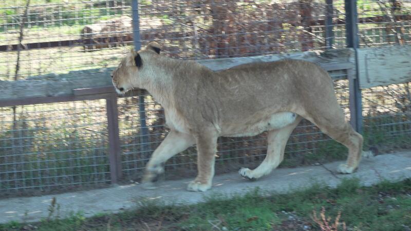león caminando recinto zoo - un león camina a lo largo un hormigón camino en un zoo recinto. Vídeo Pro