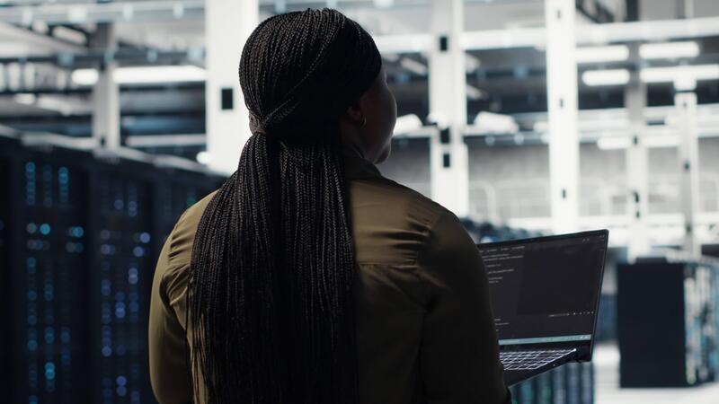 programador utilizando artificial inteligencia en datos centrar a optimizar red infraestructura. servidor granja eso experto utilizando ai máquina aprendizaje a diagnosticar y resolver hardware mal funcionamiento Vídeo Pro
