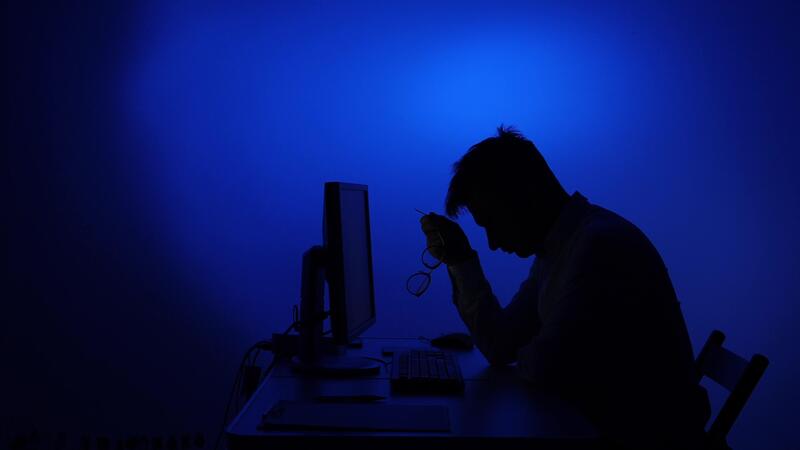 un hombre sentado a un escritorio en frente de un computadora Vídeo Pro