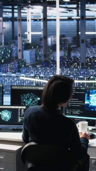 vertical servidor habitación sistema administradores utilizando ai a revisión infraestructura diagnósticos eso profesionales en datos centrar analizando actuación datos utilizando artificial inteligencia tecnología, cámara un Vídeo Pro