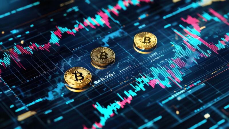 digital criptomoneda comercio concepto con bitcoin monedas en vistoso gráficos y datos visualización para invertir y Finanzas temas Vídeo Gratis