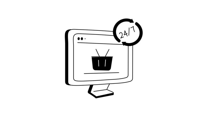 un computadora monitor mostrando un en línea compras carro, con un 24, 7 7 icono animación Vídeo Pro